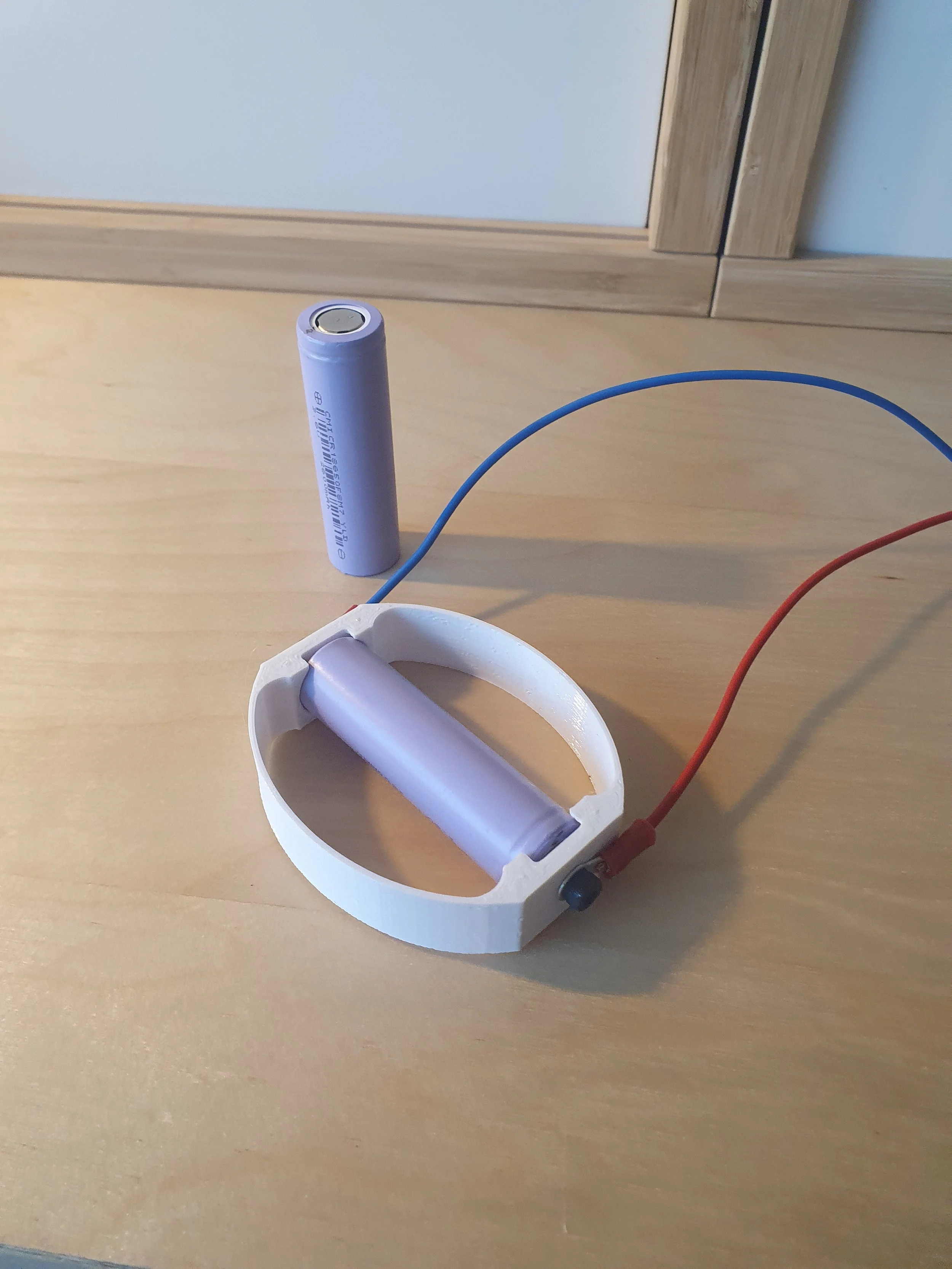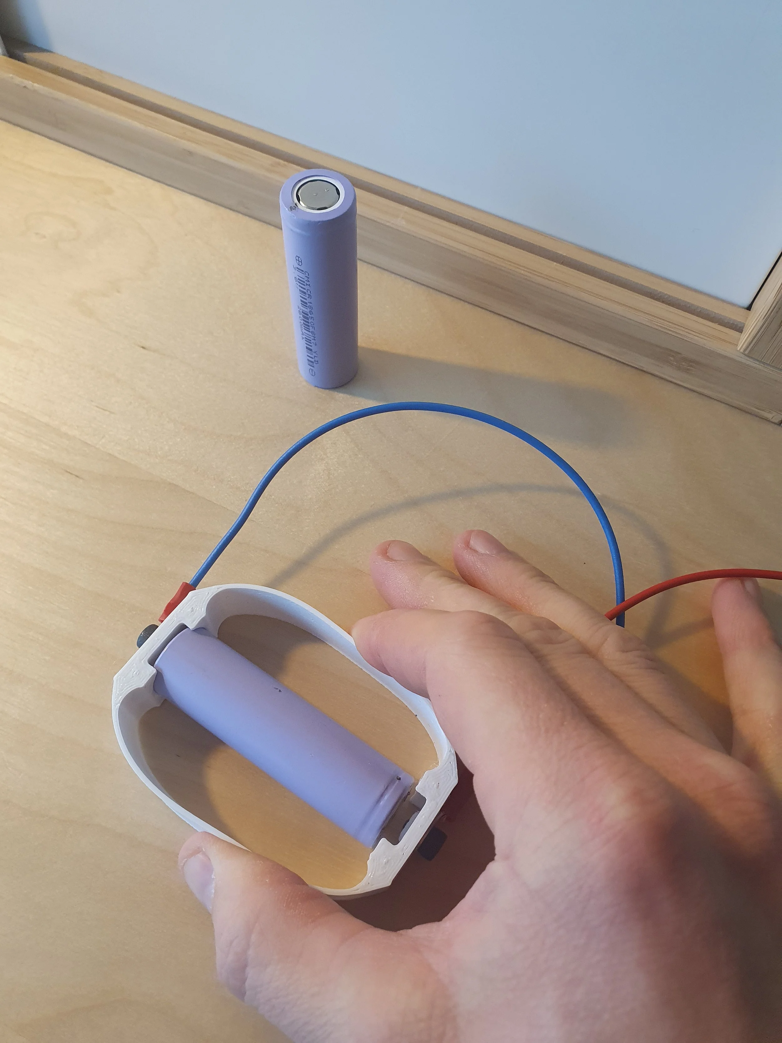 På bildet ser man en holder til et 18650 batteri. Dette er de samme batteriene som er i batteridrillen din og Tesla bilene.
