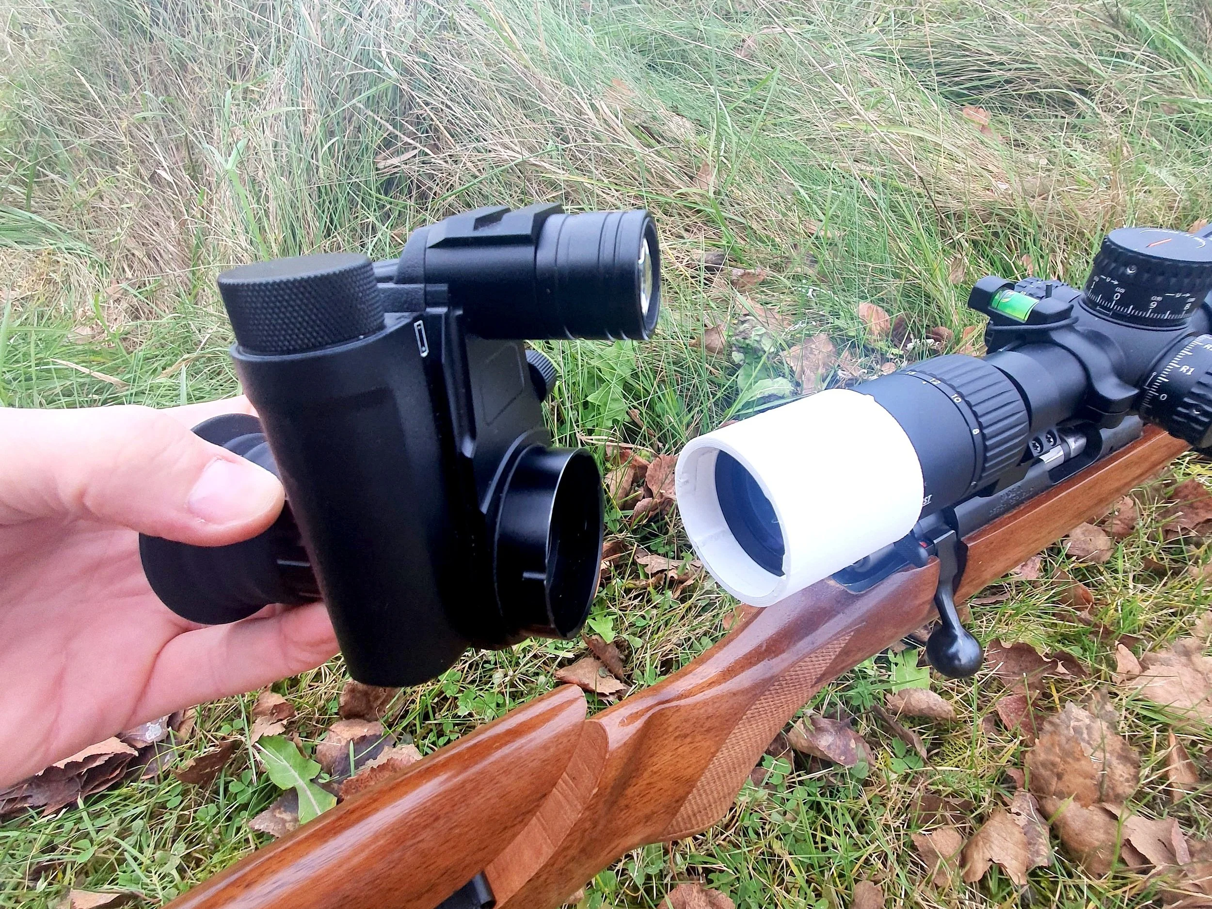 3D printed adapter for nattoptikk til et kikkertsikte.