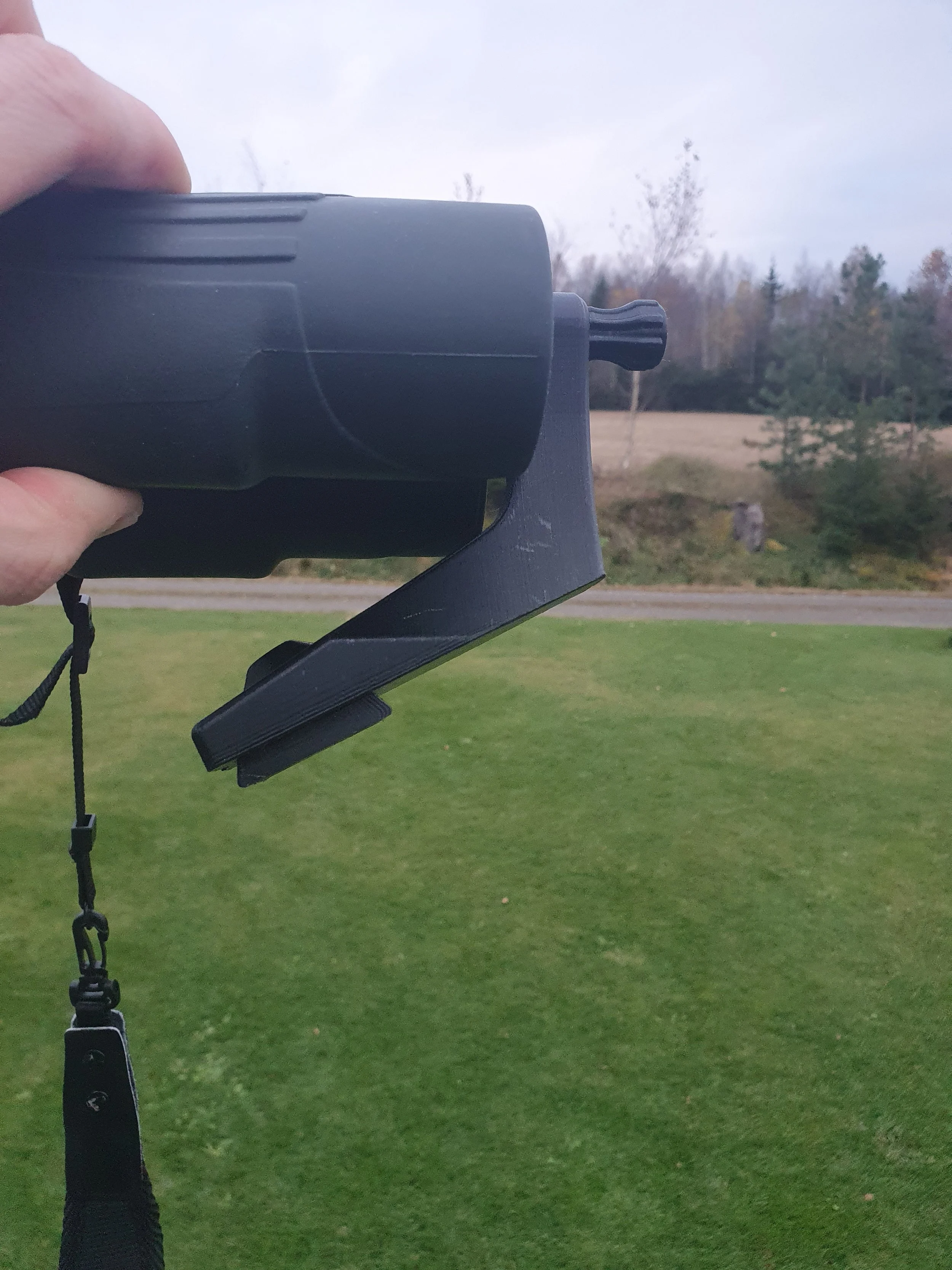 Adaptere er et av de produktene som egner seg spesial bra for 3D printing. Man har en stor grad av fleksibilitet til å tilpasse dimensjoner til akkurat det man trenger. I dette tilfellet ønsket man å lage en adapter som passet akkurat til dette kikkertsiktet. Det kan monteres uten verktøy og er stivere enn det festet som følger med nattoptikken originalt.